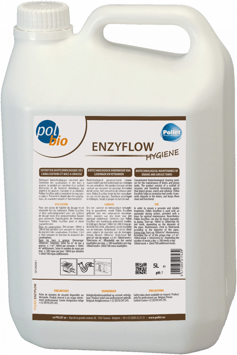 Polbio Enzyflow 5l, probiotikus lefolyótisztító konyhákba