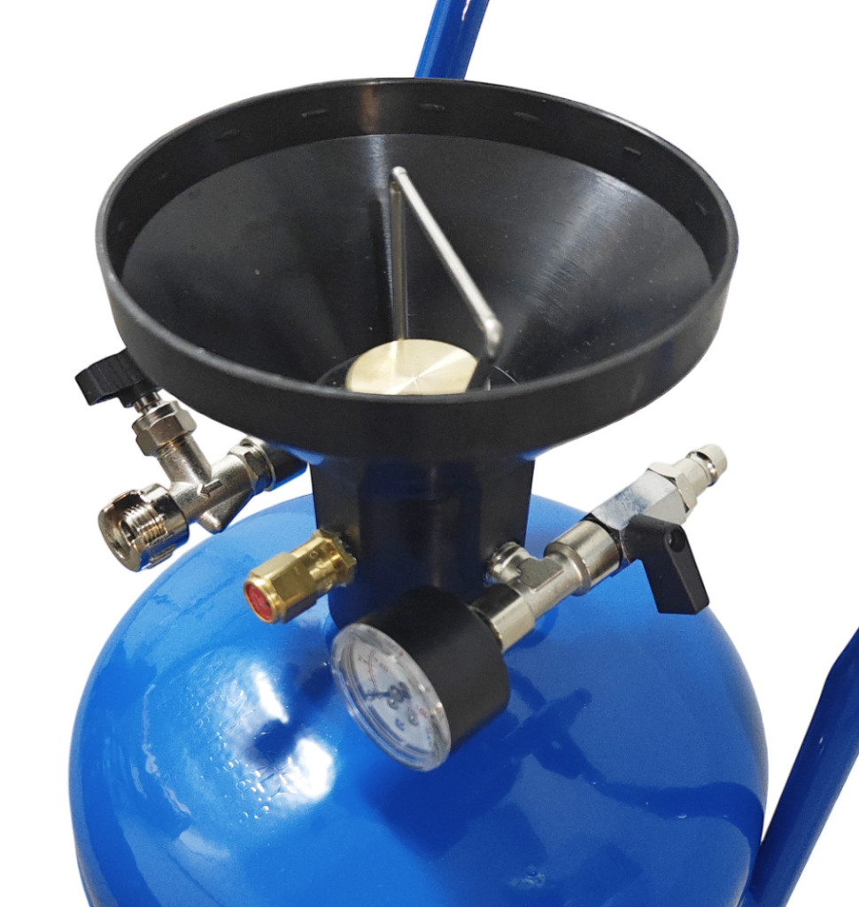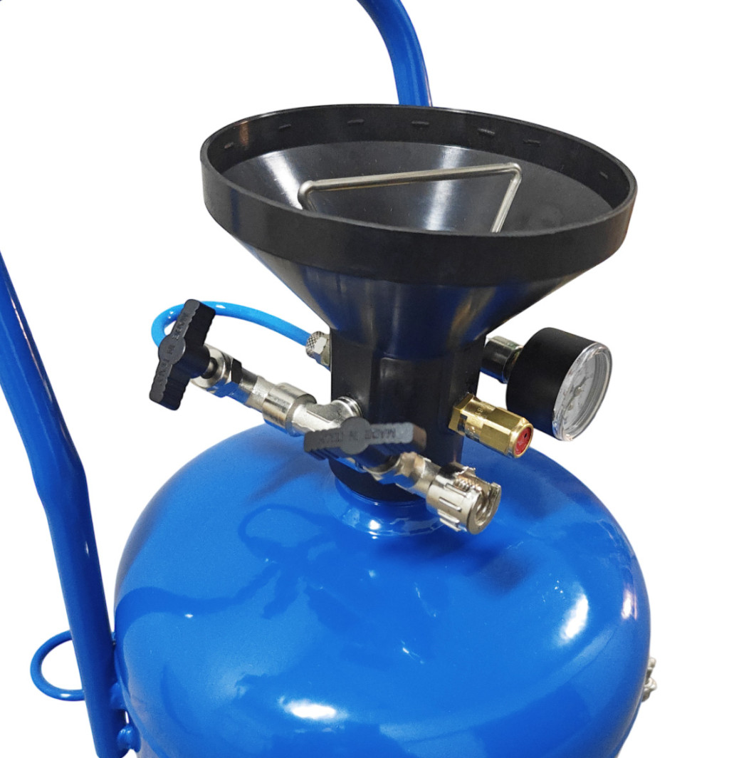Kék színű, festett habosító tartály